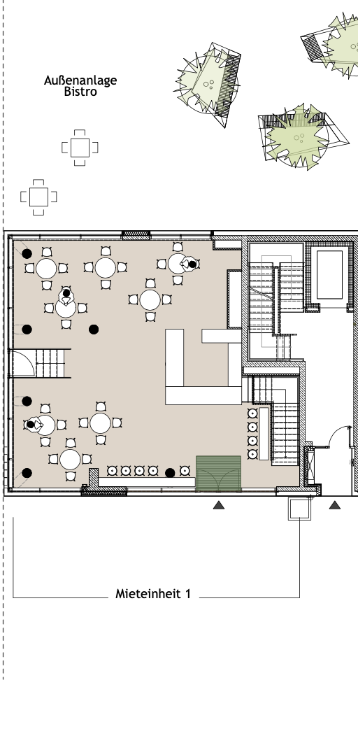 Ein besonderes Highlight ist der Außenbereich, der sich hervorragend für eine Außengastronomie eignet. Hier können Ihre Gäste entspannen und den Blick auf die lebendige Umgebung genießen. Die Fläche ist individuell ausbaubar, sodass Sie Ihre Ideen und Visionen problemlos verwirklichen können.