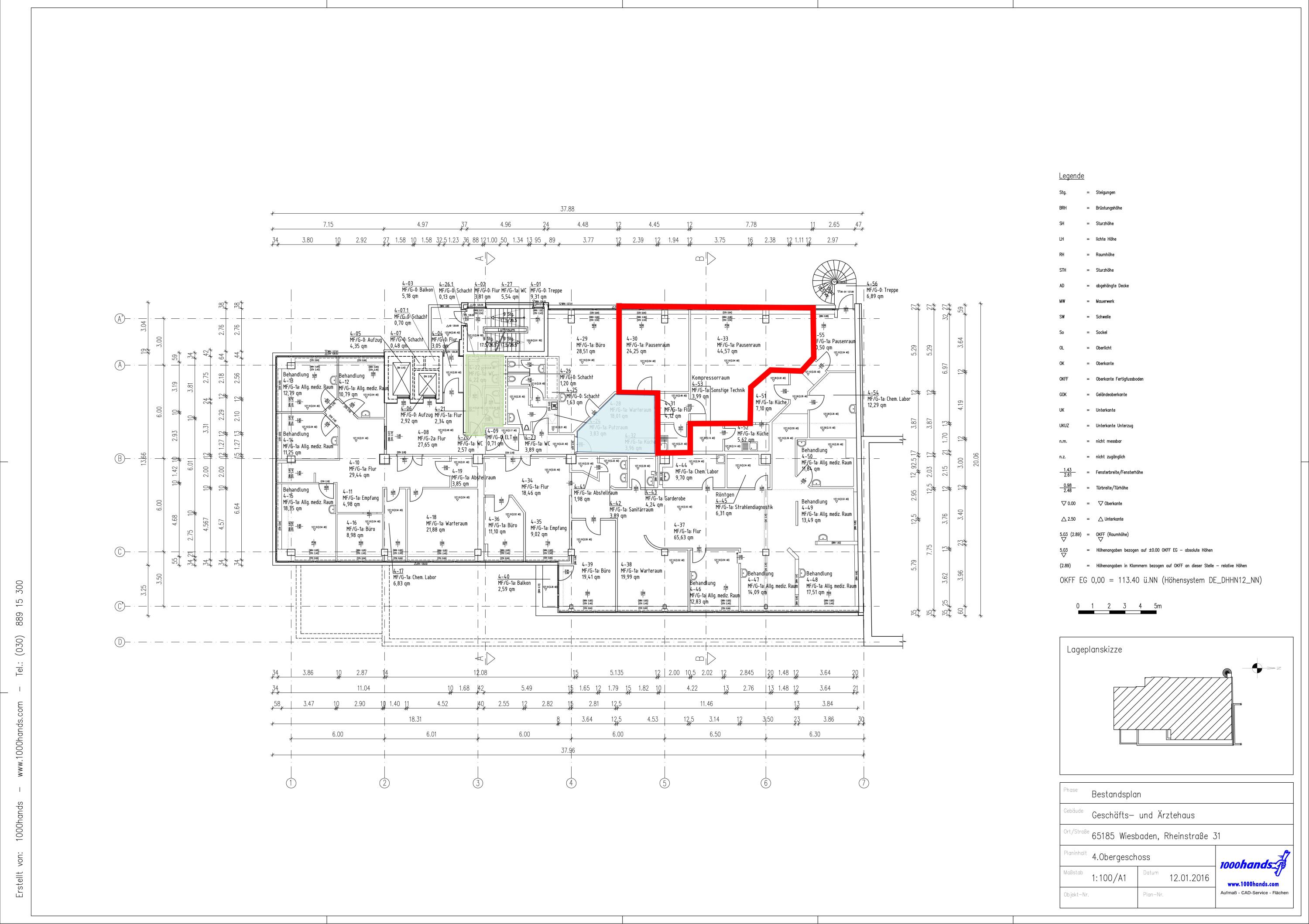 Die angebotene Mieteinheit umfasst eine Mietfläche von 85,04 m2 und befindet sich im 4. OG des Gebäudes. Der angrenzende Warteraum sowie die Sanitäreinheit wird hälftig mit der ansässigen Praxis für Kinder- und Jugendmedizin gemeinschaftlich genutzt. Die auf die beiden Räumlichkeiten entfallende Miete wird entsprechend hälftig angesetzt.