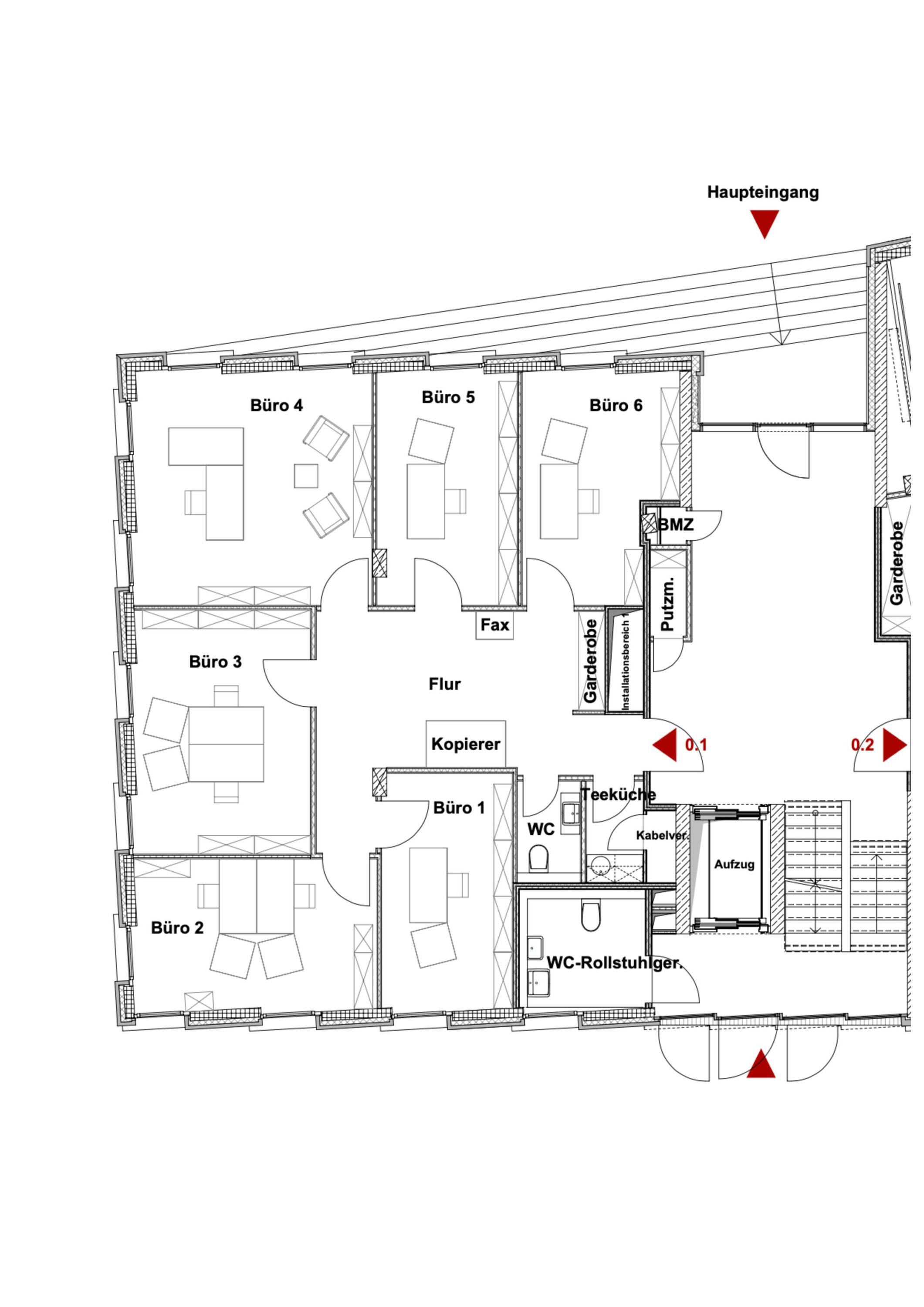 Ein Bürohaus mit Charakter: Die überkanteten Platten aus dunklem Architekturbeton und die großen Fenster beleben die streng strukturierte Fassade der Eastsite One. Das Bürohaus mit Tiefgarage bietet gut 3.300 Quadratmeter Bürofläche. Die 2009 errichtete Immobilie ist u.a. mit Bauteiltemperierung, einer Lüftungsanlage, elektrischen Aluminium-Jalousien, einem transpondergesteuerten Zugangssystem, flexibler Raumaufteilung und Hohlraumböden ausgestattet. Speziell für einen Mieter haben wir eine Innentreppe und einen Aktenaufzug eingebaut. Aktuell steht eine Mietfläche von 147 qm zur Verfügung, die sich durch eine hohe Flächeneffizienz auszeichnet. Es gibt sechs Büroräume mit maximal 9 Arbeitsplätzen.