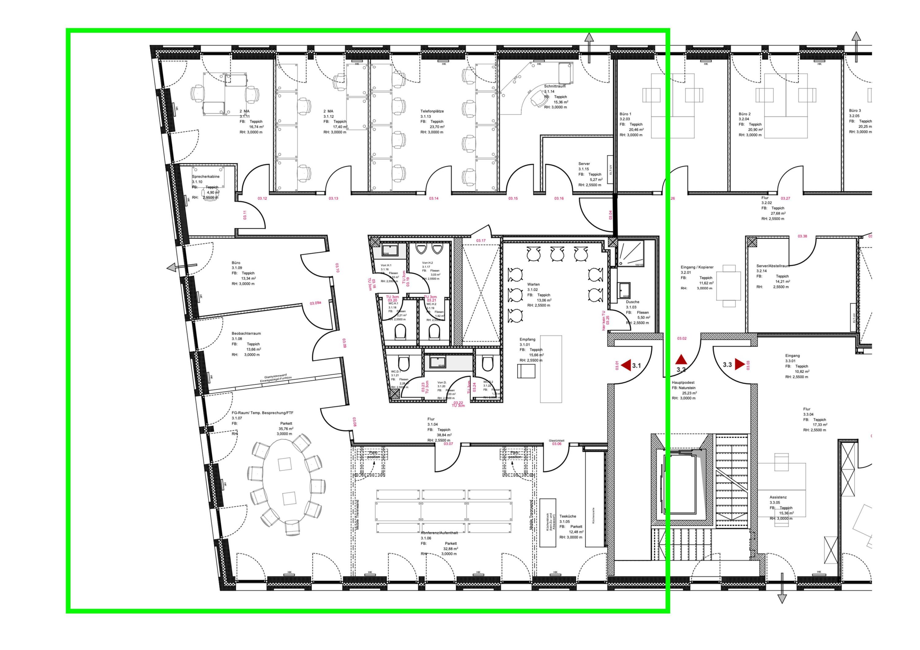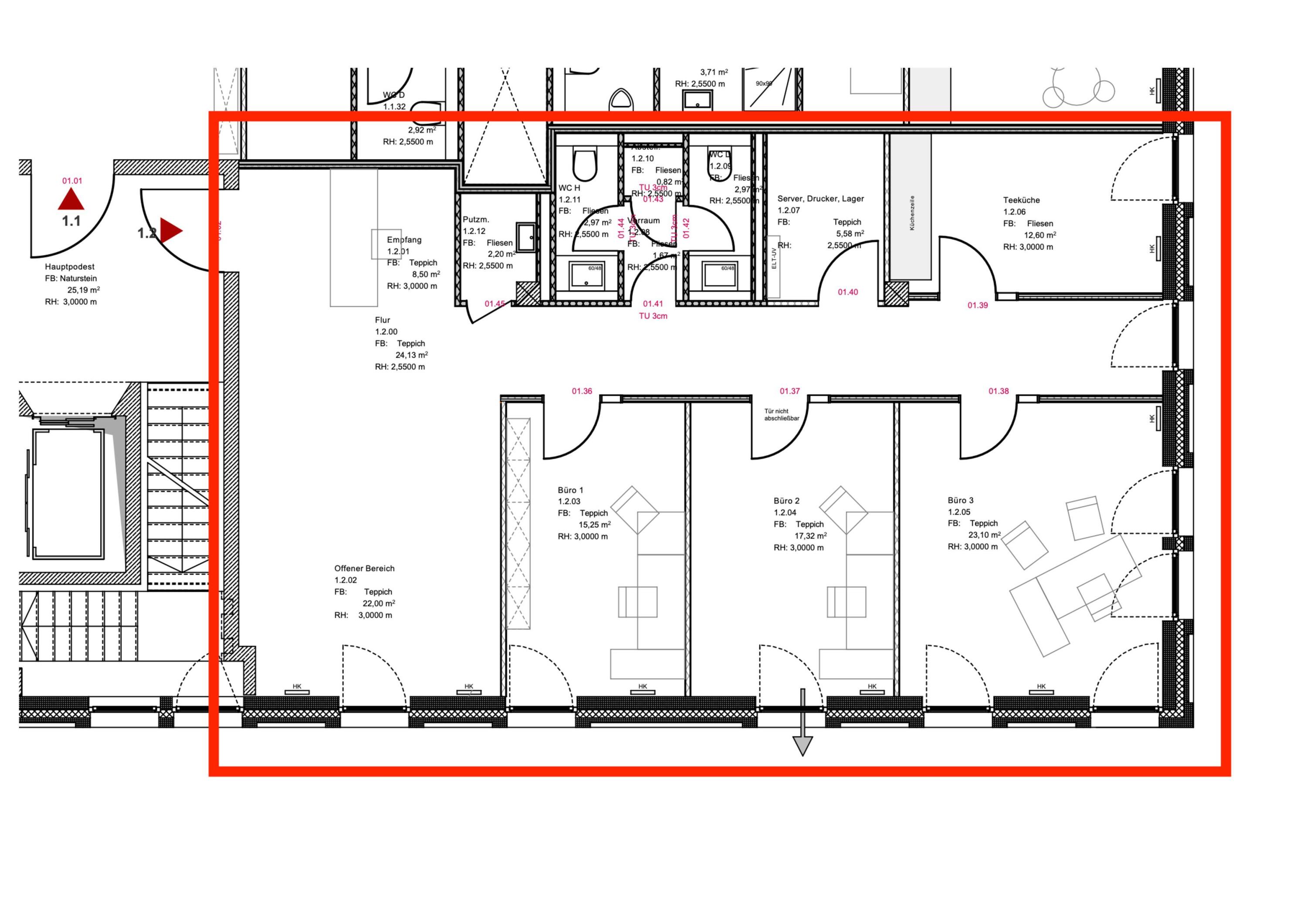Die zur Verfügung stehenden Büroflächen befinden sich im 1. Obergeschoss mit ca. 157 m² sowie im 3. Obergeschoss mit ca. 318 m². Beide Einheiten sind flexibel gestaltbar und ermöglichen eine individuelle Raumaufteilung für unterschiedliche Nutzungskonzepte.