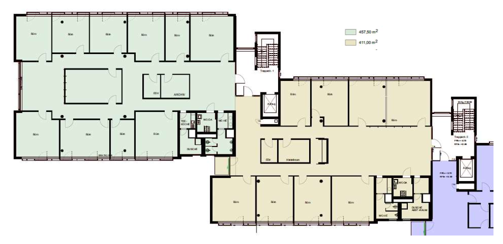 Airport Business Center 1 befindet sich in der Gottlieb-Manz-Straße 10–12 und wurde im Jahr 2003 erbaut. Das dreigliedrige Bürogebäude überzeugt durch lichtdurchflutete Flächen, hochwertige technische Ausstattung und ein modernes Ambiente. Vom Erdgeschoss bis zum penthouseartigen Dachgeschoss mit umlaufender Terrasse bietet das Gebäude flexible Raumlösungen mit eindrucksvollem Blick auf die Start- und Landebahn. Derzeit stehen im 1. Obergeschoss ca. 409 m² sowie im 3. Obergeschoss ca. 868 m² zur Verfügung, wobei die größere Einheit ab ca. 411 m² teilbar ist. Zur Ausstattung gehören Be- und Entlüftungsanlagen mit Spitzenlastkühlung und Wärmerückgewinnung, Doppelbodensysteme mit Bodentanks (1. OG), außenliegender Sonnenschutz, Aluminiumfenster sowie eine Gasheizung mit individuell regelbaren Heizkörpern. Die Räume sind teilklimatisiert, der Bodenbelag wird nach Mieterwunsch eingebracht. Eine Teeküche, Personenaufzug sowie Stellplätze in der Tiefgarage oder im Außenbereich runden das Angebot ab. Der Mietpreis beträgt 14,50 €/m² zzgl. Ausbau, die Nebenkostenvorauszahlung ca. 2,90 €/m² (jeweils zzgl. gesetzl. MwSt.). Die Flächen sind nach Vereinbarung verfügbar, eine Anmietung erfolgt provisionsfrei.
