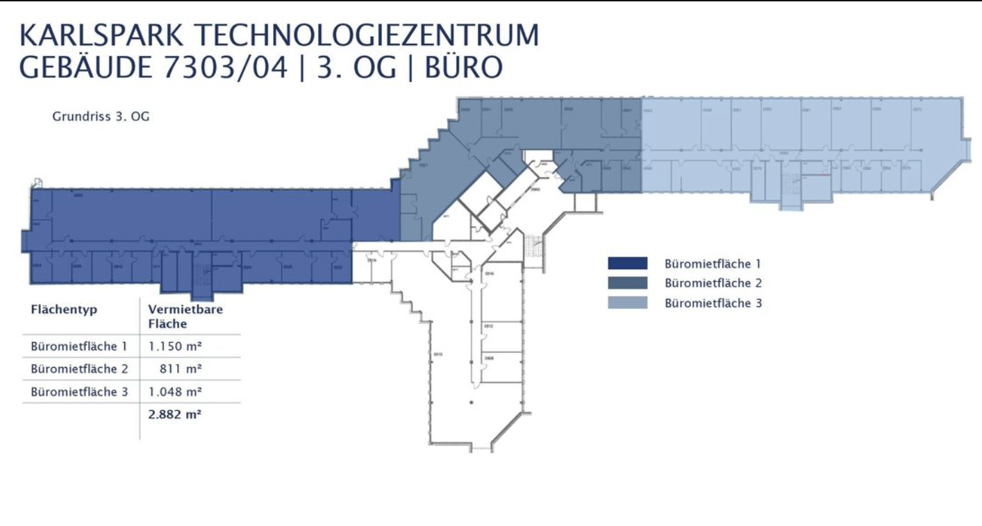 Die zur Vermietung stehenden Büroflächen befinden sich im dritten Obergeschoss eines modernen Büro- und Technologiegebäudes und bieten dank der erhöhten Lage einen weiten, attraktiven Ausblick über Karlsruhe. Eingebettet in einen innovativen Technologie-Gewerbepark profitieren Mieter hier von einer synergetischen Infrastruktur mit einem spannenden Branchenmix und einem professionellen Umfeld.