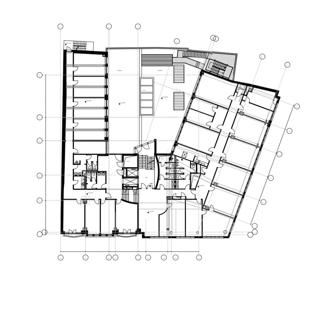 Die Beleuchtung der Arbeitsplätze erfolgt komfortabel über Stehleuchten, während ein Glasfaseranschluss im Haus eine schnelle und zuverlässige Internetverbindung gewährleistet. Zwei Personenaufzüge sorgen für einen barrierefreien Zugang, und die hauseigene Tiefgarage bietet ausreichend Parkmöglichkeiten für Mitarbeiter und Besucher.