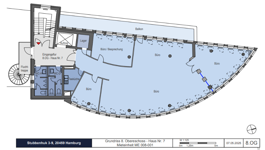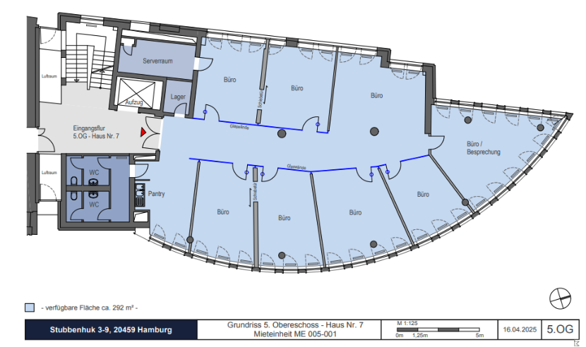Entdecken Sie erstklassige Büroflächen im Herzen Hamburgs, gelegen am Stubbenhuk 3-9. Diese exklusive Immobilie bietet eine verfügbare Mietfläche von insgesamt 541,0 m², die auf das 5. und 8. Obergeschoss aufzuteilen ist. Die moderne Architektur und großzügige Raumgestaltung zeichnen das Hauptgebäude aus und schaffen eine inspirierende Arbeitsatmosphäre für Unternehmen aller Art.