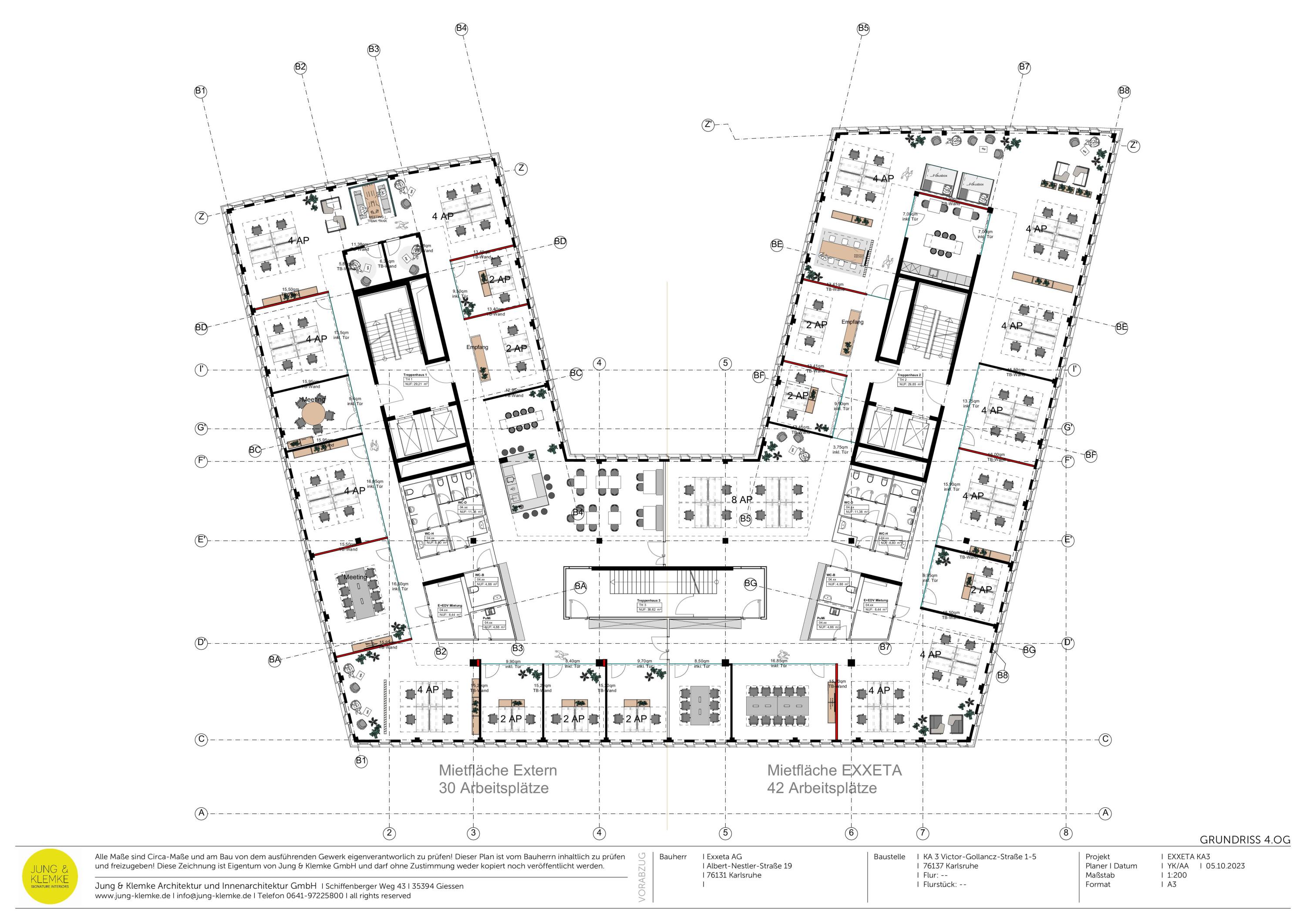 Aktuell steht im 4. Obergeschoss des Hauses I eine freie Fläche von ca. 757 qm zur Untervermietung zur Verfügung – ideal für Unternehmen, die eine repräsentative und moderne Arbeitsumgebung in Karlsruhe suchen.